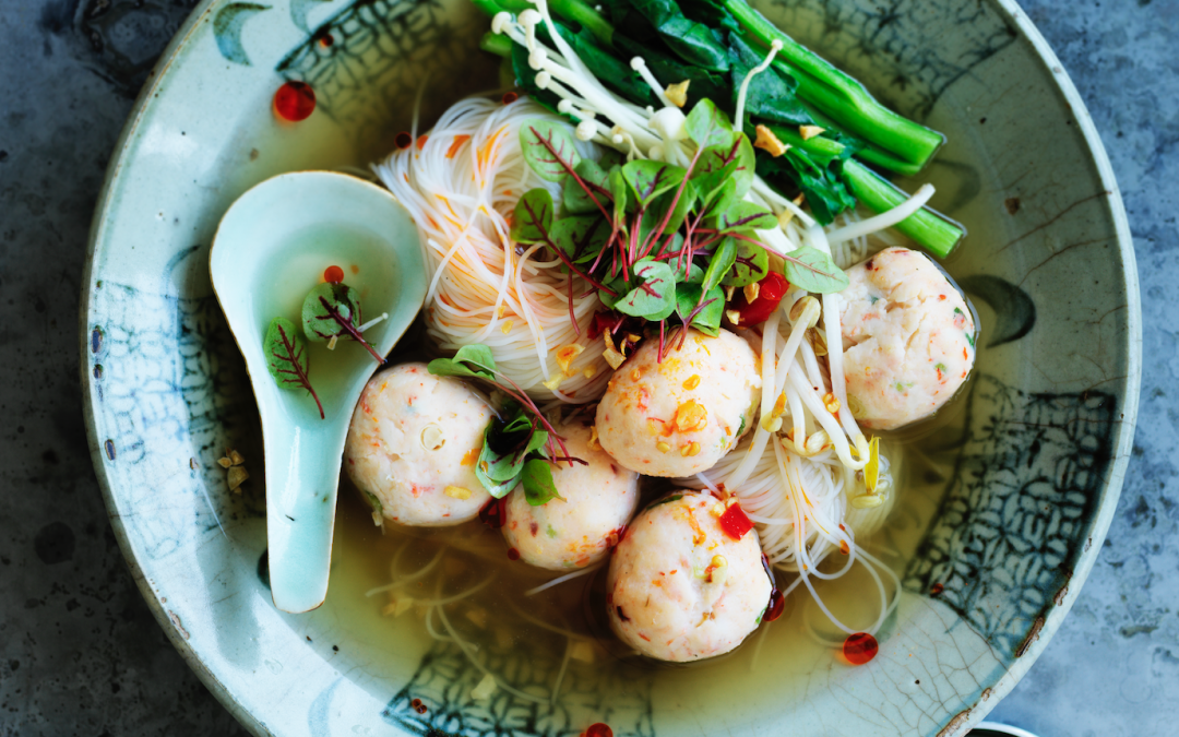 - Place prawn balls into steamboat at the table and cook 6-8 minutes or until cooked through. Serve with vegetables and noodles cooked in the hotpot and a little extra broth from the hotpot for your bowl.