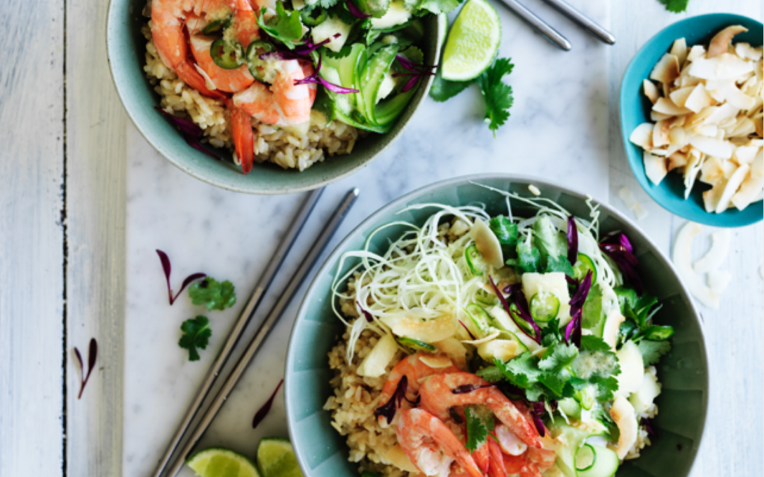 - Thinly sliced long green chilli, toasted coconut flakes and lime wedges, to serve
